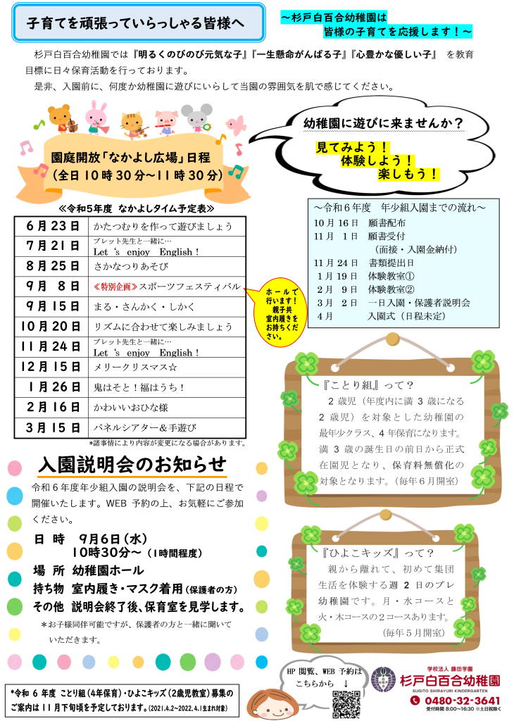 【場所】杉戸白百合幼稚園 子育て支援センター『キッズあすなろ』