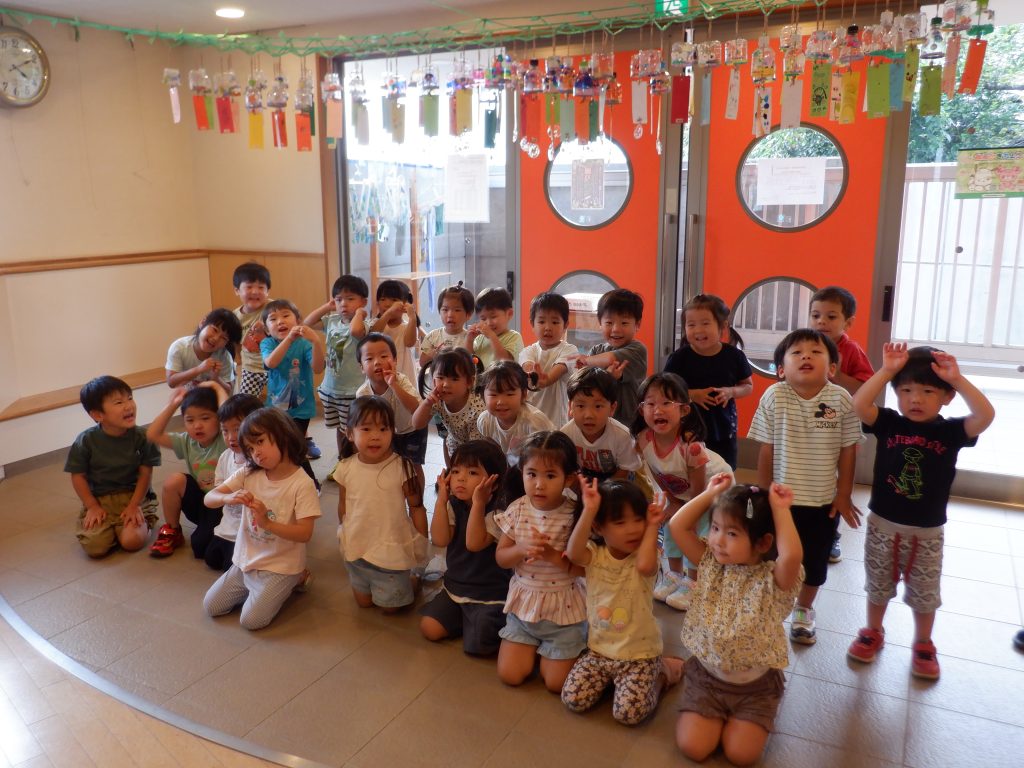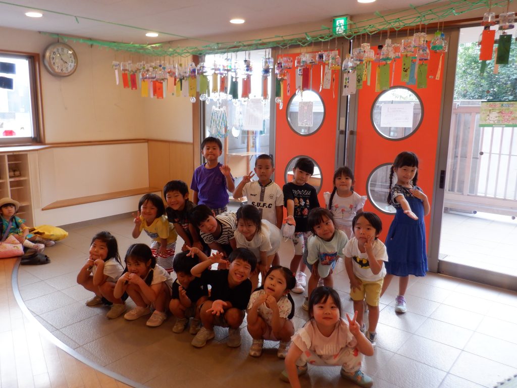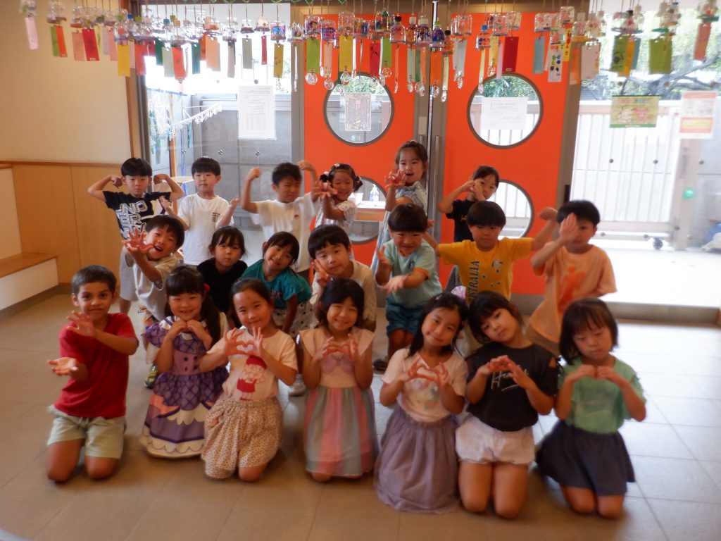 みんなで風鈴の下で記念撮影もしました。お家で飾ってくださいね♡