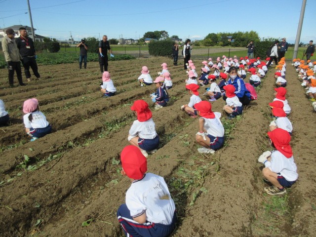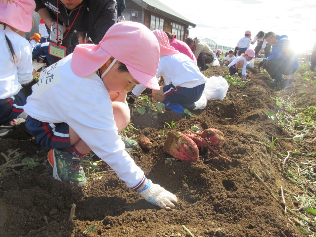 今日は年中・年長の子どもたちが、楽しみにしていた「さつまいも掘り」を行いました。