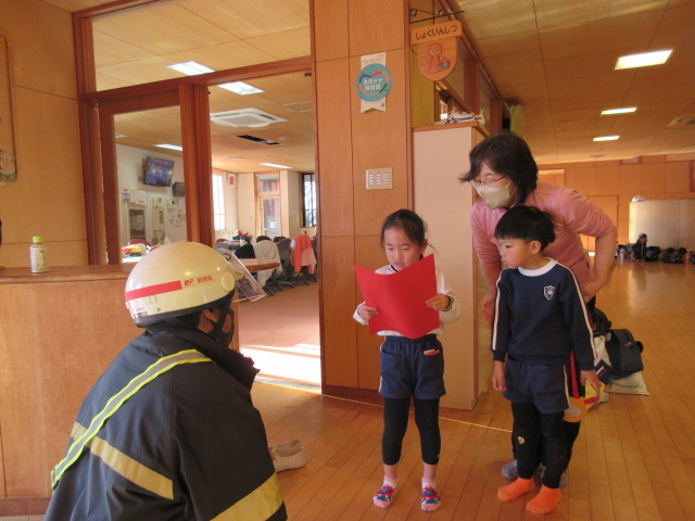 勤労感謝の日にちなんで、年長組の子どもたちが、毎日園のために力を尽くしてくださっている皆様へ、感謝状と手作りのメダルを贈りました。