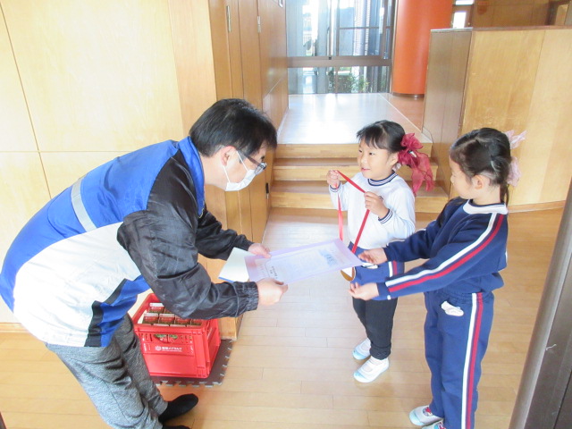 贈呈の際には、少し緊張しながらも「ありがとうございます!」と元気に伝える子どもたちの姿があり、受け取ってくださった皆様も温かい笑顔で応えてくださいました。