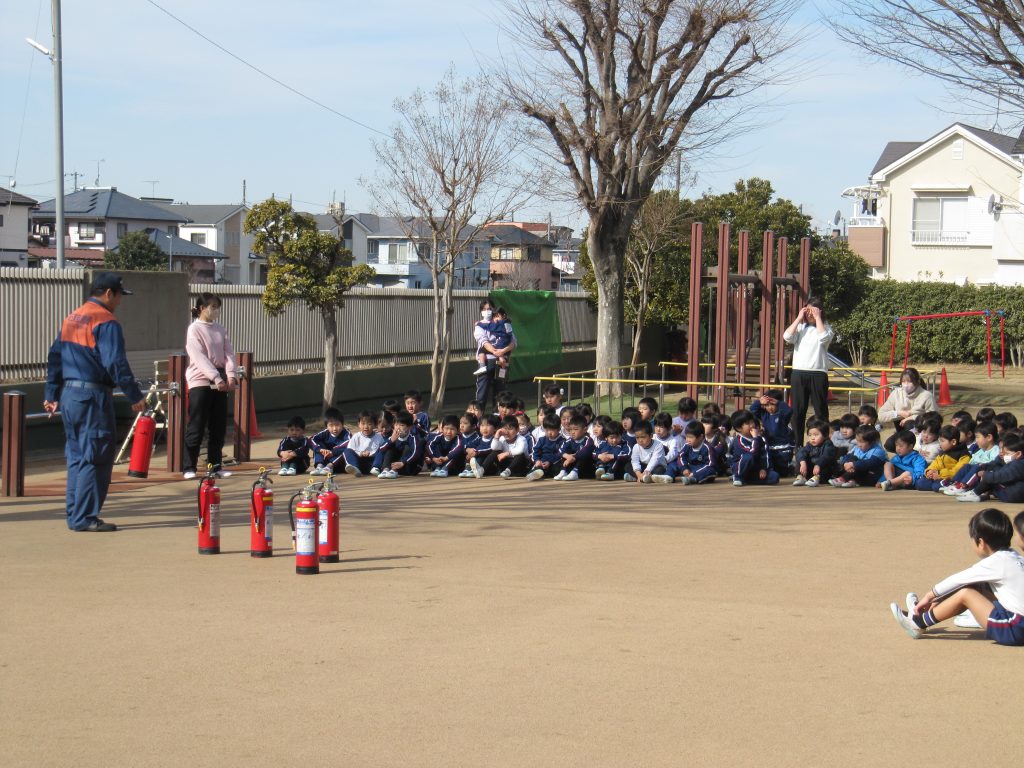 訓練後には、杉戸消防署の職員の方から「どうして門の外まで避難したのか」「もし本当に火事が起きたらどうすればよいか」をみんなで振り返りました。子どもたちは真剣な表情で話を聞き、いざという時の行動を一つひとつ確認していました。