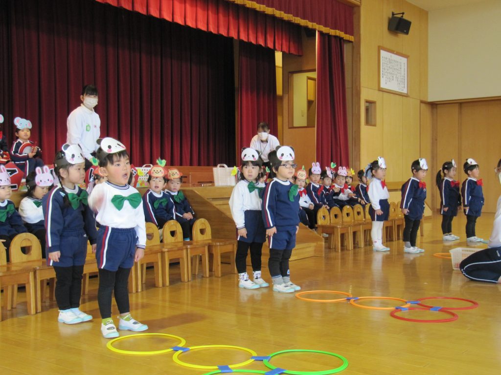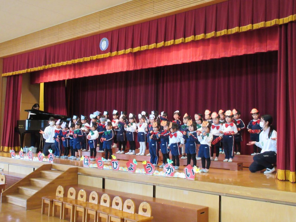 「おおきなたいこ」「おおきくなったよ」「きらきらぼし」の合唱では、子どもたちが体いっぱいに声を響かせ、楽しそうに歌う姿がとても印象的でした。「大きな声を出すこと自体が嬉しくて仕方がない」そんな気持ちが伝わってくる歌声でした。
