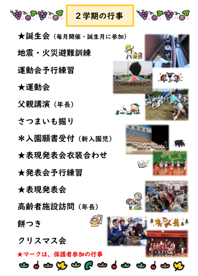 主な行事を掲載しております。行事の時期は、年度により変更することがございます。