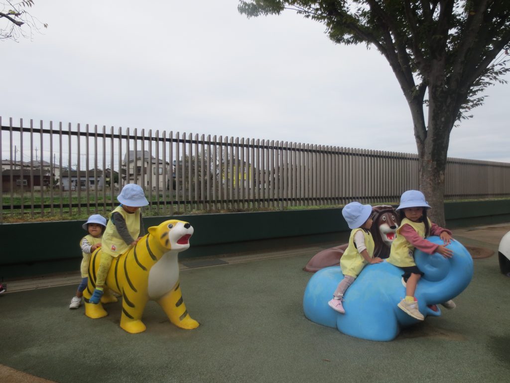 園庭でかけっこをしたり、遊具で遊んで身体を動かしましょう!!