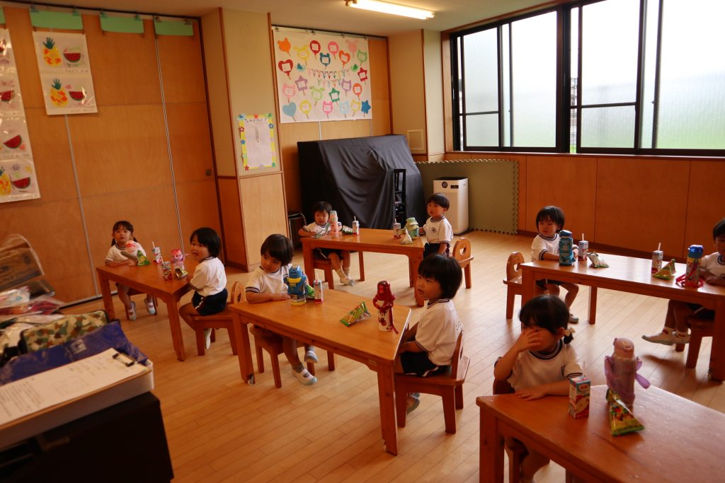 本日(22日)のなかよし広場は高温のため、園庭ではなくエントランスホールにて行います。縁日ごっこを楽しみましょう! 水筒を必ずご持参ください。