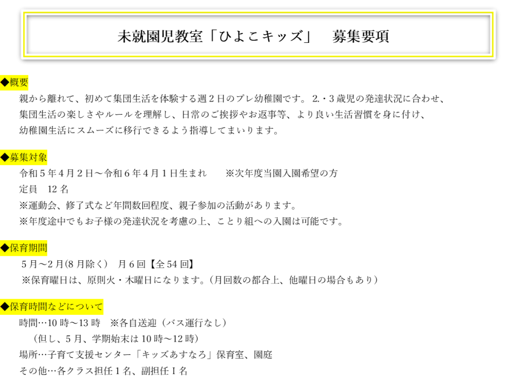 【対象】 2歳~未就園児の親子 定員40組(前日までに予約)